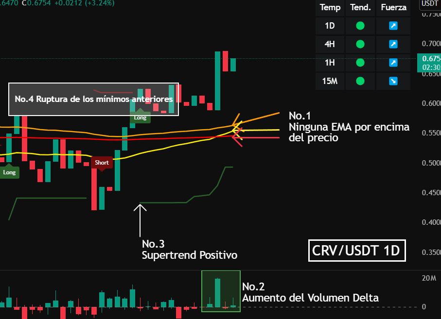 Aunque no ha tenido un movimiento tan explosivo, destaca por mantenerse sobre el soporte de las EMAs. CRV sigue siendo un proyecto sólido y su estructura técnica apunta a una continuación alcista.